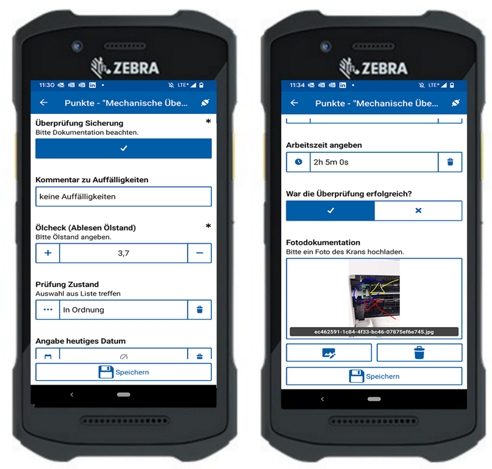 Per App auf dem mobilen Gerät (Smartphone, Tablet) kann dann diese Checkliste schrittweise abgearbeitet und abgehakt werden. Dabei können weitere Informationen wie Fotos, Dokumente oder eine Unterschrift problemlos ergänzt werden.