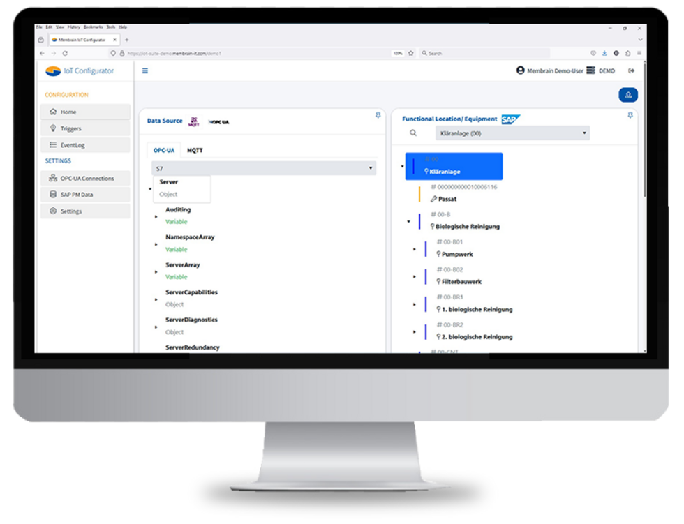 Schaffen Sie mehr Transparenz für Ihre Instandhaltungs-Prozesse: Mit dem neuen Digitalen Zwilling der Membrain lassen sich alle konfigurierten Live-Daten automatisch dokumentieren - einfach, schnell und vom Fachbereich konfigurierbar. So können aktuelle Meldungen und Status im Hallenplan per Drag & Drop live visualisiert werden.