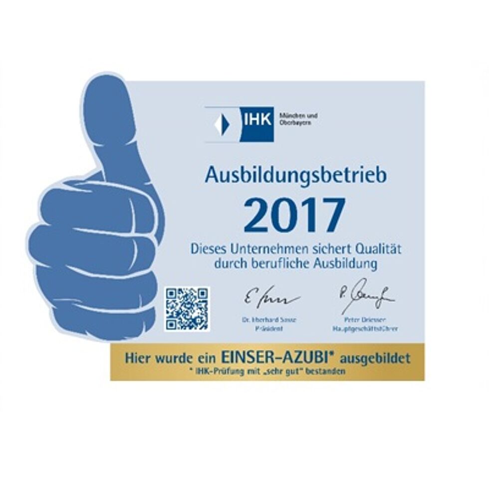 Auch 2017 ist die Membrain GmbH wieder IHK-Ausbildungsbetrieb. In diesem Jahr freuen wir uns gemeinsam mit unseren Auszubildenden über die Auszeichnung „EINSER-AZUBI“ der IHK. In unserer Firmenzentrale München wurde erstmalig ein Einser-Azubi ausgebildet.