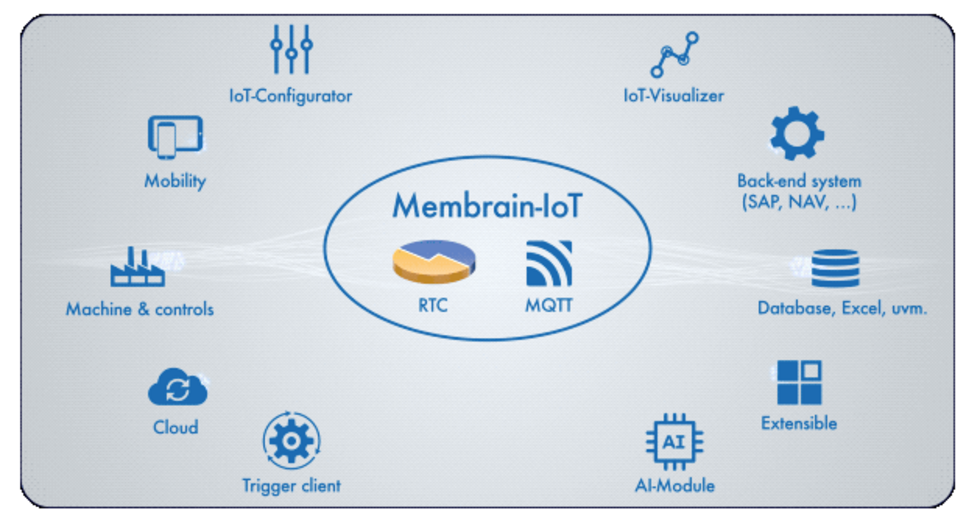 Unterhaching, 16. Mai 2023 – Die Membrain GmbH, innovativer IoT-Plattform-Provider und Softwarehersteller für die Entwicklung von Business Apps und Standard-SAP-Modulen, präsentiert auf der maintenance 2023 seine aktuelle Lösung für die mobile InstandhaltungDie Standardlösung wird dabei um eine IH-IoT-Komponente ergänzt, mit der sich einfach und schnell IoT-Szenarien konfigurieren lassen. So kann beispielsweise der Maschinenzustand (Temperatur, Druck, Drehzahl, Schwingungen usw.) von Sensoren überwacht und mit Schwellenwerten (Prüflose) abgeglichen werden. Trigger-Events lösen dann automatisch eine Meldung aus und stoßen den kompletten IH-Prozess an.