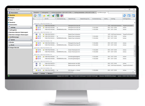 With the asset inventory browser for SAP, you create your orders according to cost centers or rooms, etc. This instance maps the printing of paper lists for carrying out the asset inventory from SAP and replaces it with a completely paperless process without media discontinuity in SAP. MembrainPAS-AM also generates an order that can later be displayed in the console, edited and posted to SAP with the last inventory date, etc.
